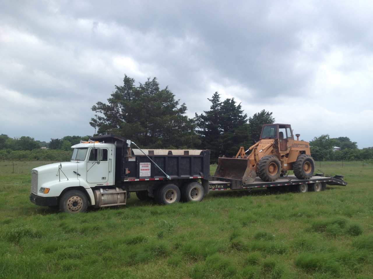 (3) FreightLiner 10 Wheel dump trucks with Pup trailer.