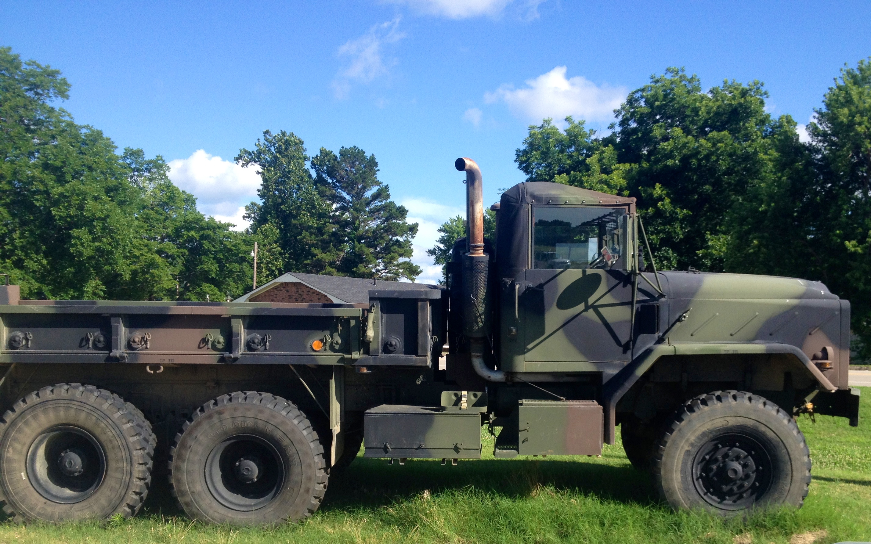 M939 5 ton 6x6 miltary truck with bed mounted 1,000 gallon water tank.